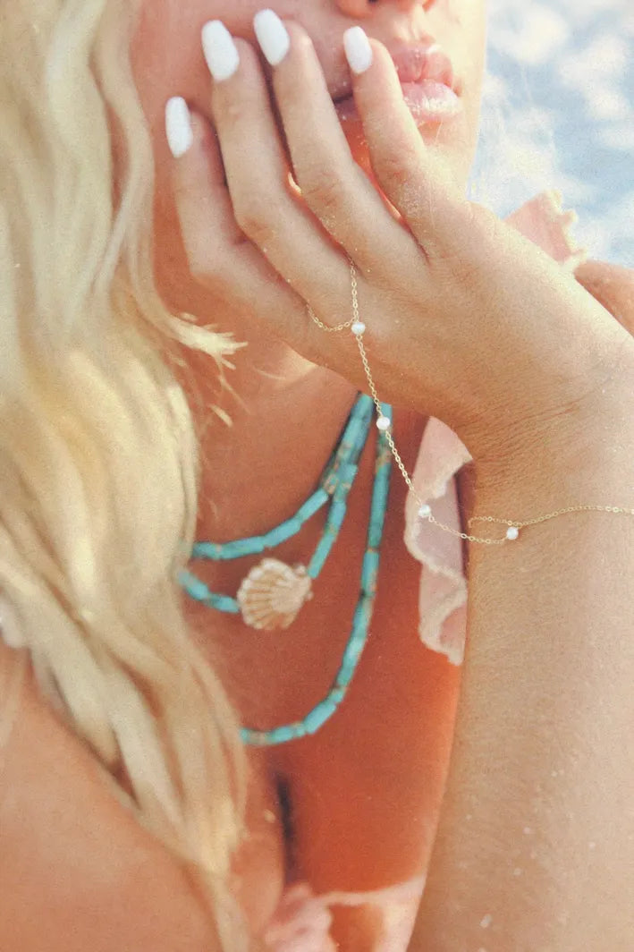 Crafted from sterling silver, this hand chain is made to last—whether you're in the ocean or on the go. Minimal, polished, and easy to wear, it's the kind of piece you’ll never want to take off (and don’t have to). Wrist is as long as 8 and as short as 5 inches.